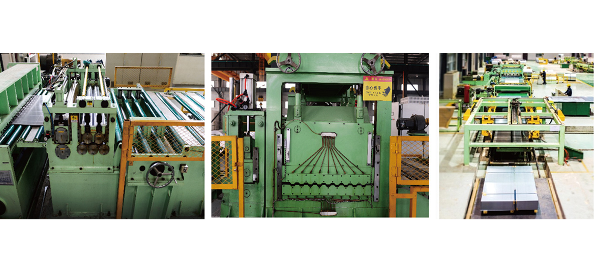KP-003開平機(jī)組,系進(jìn)口的專業(yè)超薄板鋼卷整平裁剪設(shè)備。該機(jī)采用性能優(yōu)越的日本“RELIANCE”直流控制系統(tǒng),主要電機(jī)、電氣元件、軸承等零件均為高品質(zhì)名牌元件,確保了該機(jī)高速、穩(wěn)定的運(yùn)行。加工原料鋼卷重量最大可達(dá)25噸,直徑2000mm,寬度1850mm,有19輥精整機(jī)構(gòu),產(chǎn)品平坦優(yōu)良;該機(jī)組還配備了日本專利的高速連續(xù)回旋式剪床,鋼板經(jīng)NC計(jì)算機(jī)控制定尺裝置精密計(jì)算,產(chǎn)品精度優(yōu)異,生產(chǎn)效率一流,可裁剪0.3-4.5mm厚度的鋼板,疊料站可收400mm-5000mm的板材,并配備平行分離式無傷收料托架,從而使產(chǎn)品擁有整齊的外型。主要加工冷軋、鍍鋅、烤漆、馬口鐵、不銹鋼、鋁合金、銅合金等材料。